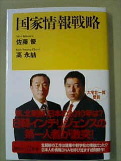 「日本が取るべき国家戦略とは何でしょうか。それは、かねて佐藤優氏が唱えておられるように、本格的なインテリジェンス機関を設立することなのです。すばらしい経済大国としての国家の品格を維持するために、日本は、かつての軍事大国に逆戻りするのではなく、インテリジェンス大国になるべきでしょう。」(高永戞