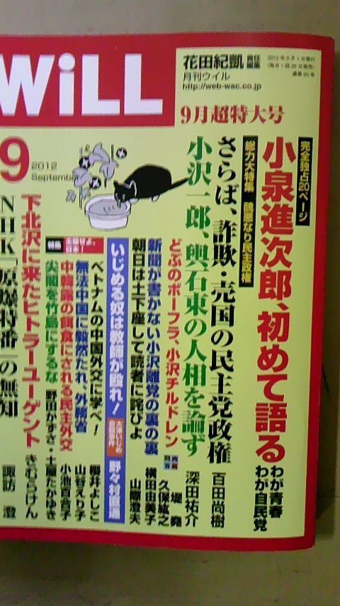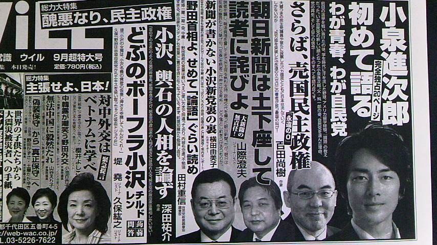 『ウイル』9月号は明日発売です。目玉は「完全独占20ページ 小泉進次郎、初めて語る わが青春 わが自民党」です。良い読み物です。